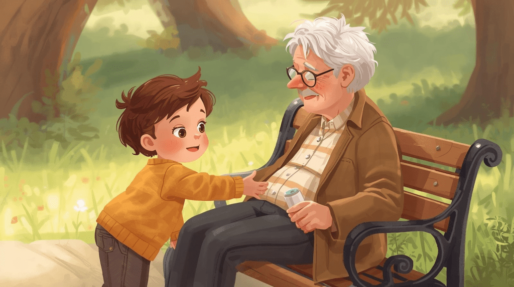 prompt: A girl is feeding cats and dogs in a nice, colorful park.Birds are singing.An old woman is giving bread to the birds.The sound of water makes the park peaceful and calm.Children are playing and running.People are happy.The weather is sunny and warm.One family is having a picnic on the green grass near the trees.